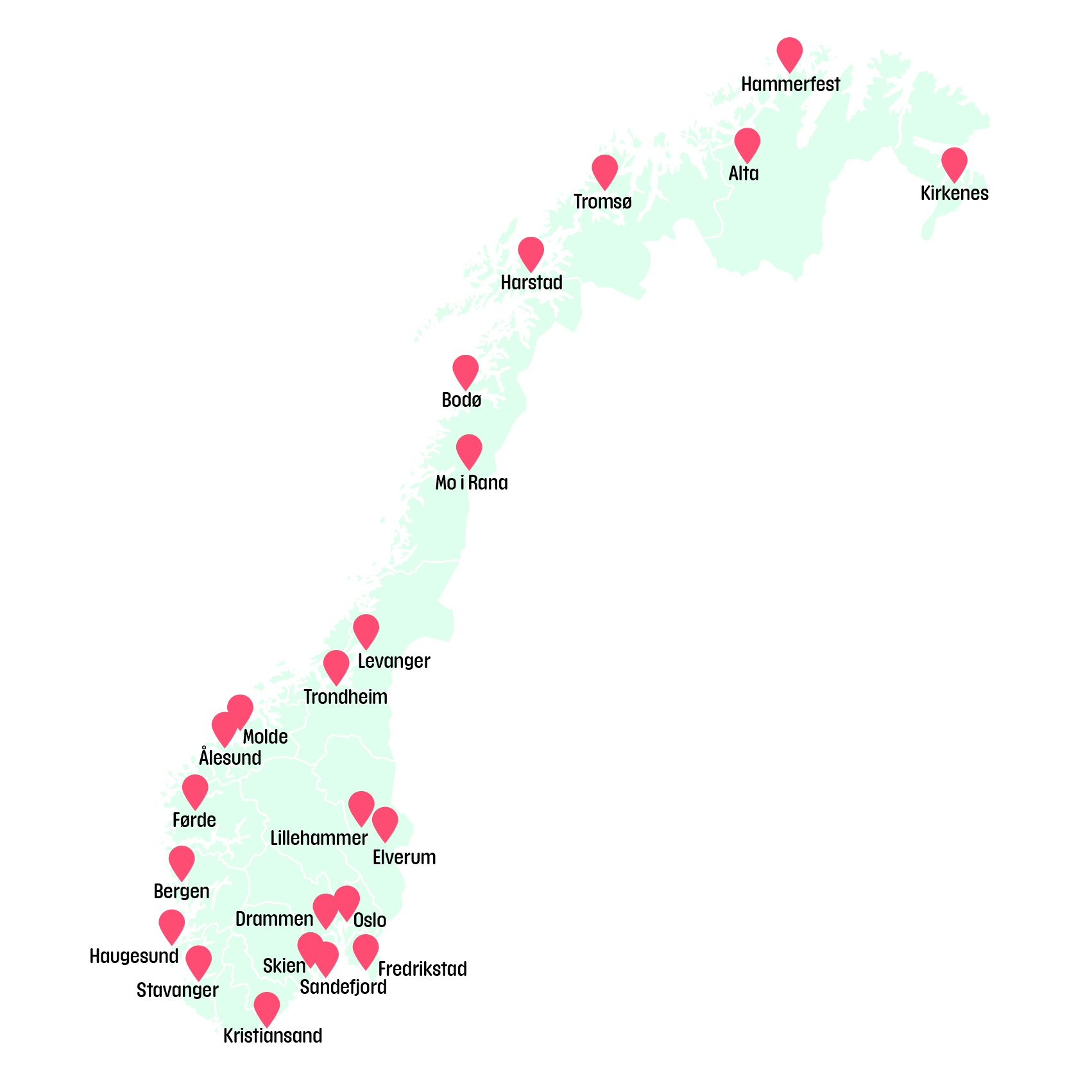 In Norway there are 23 SAC centers. You can see how they are located on the map.